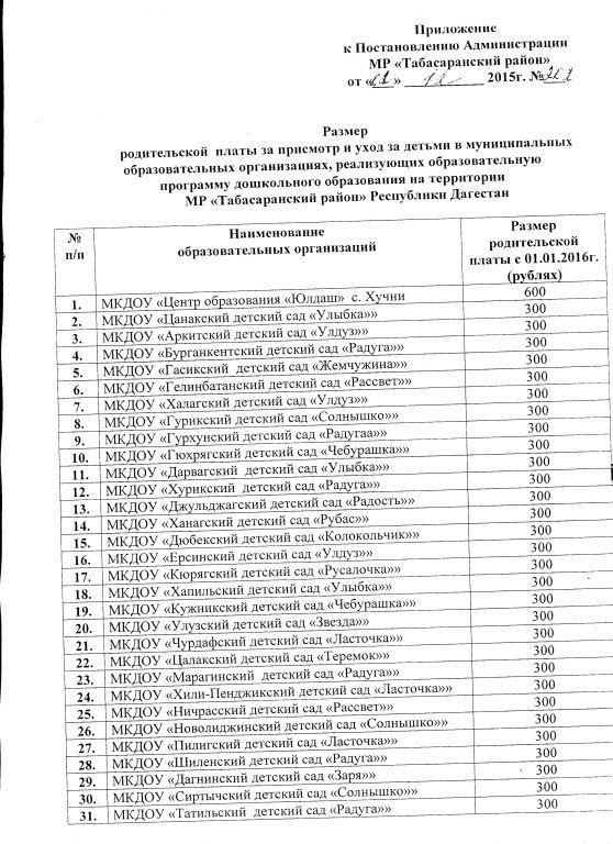 Документ об установлении размера платы, взимаемой с родителей (законных представителей)
